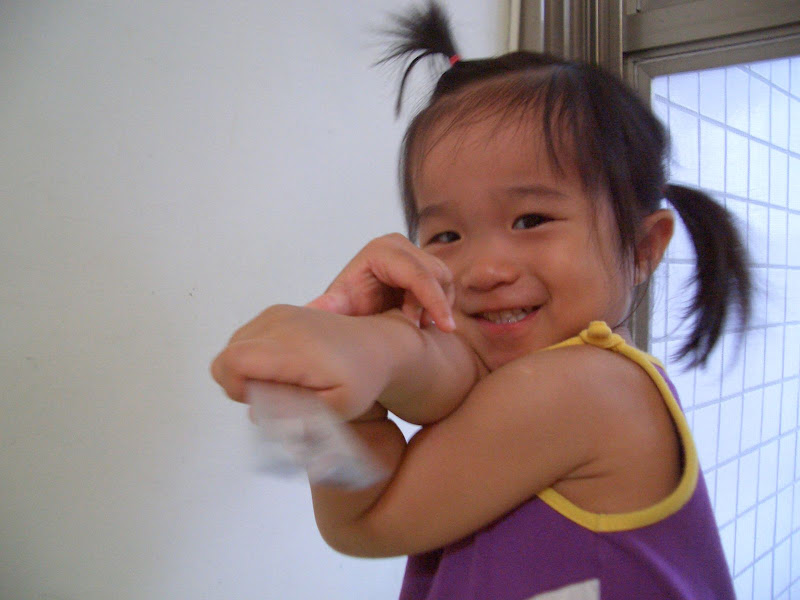 練習自己用湯匙吃東西的Evelyn最新照片集。