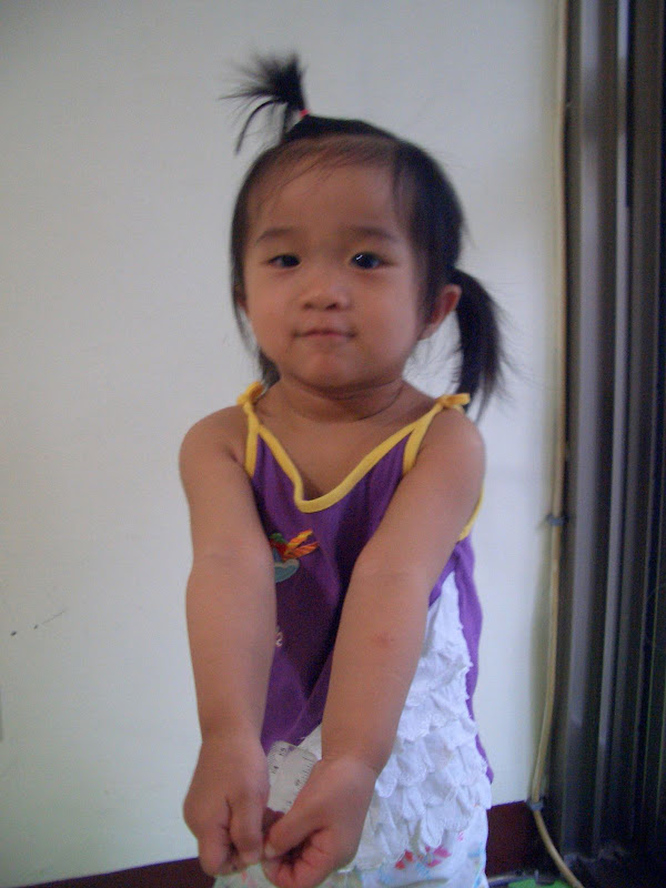 天氣開始有點熱起來了,媽咪幫我穿上細肩帶的辣妹裝唷! 好看嗎?^^
